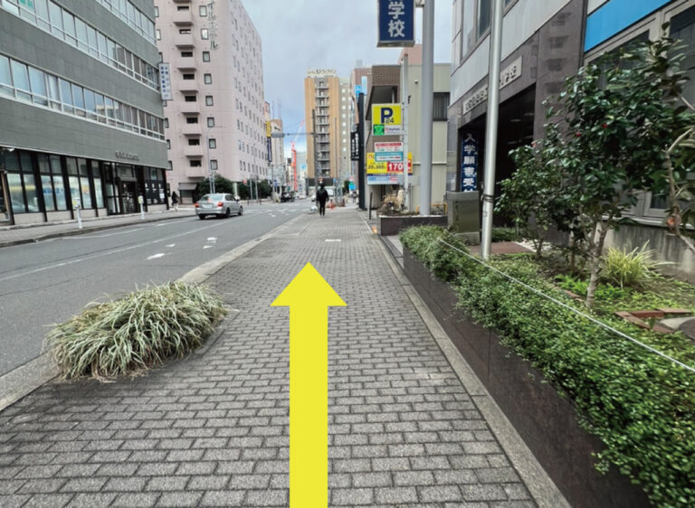 ②あおなみ線に向かってまっすぐ進みます。