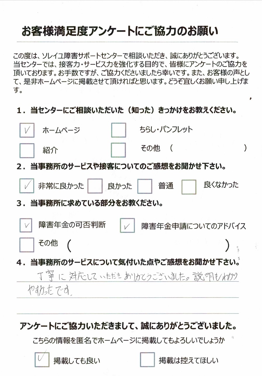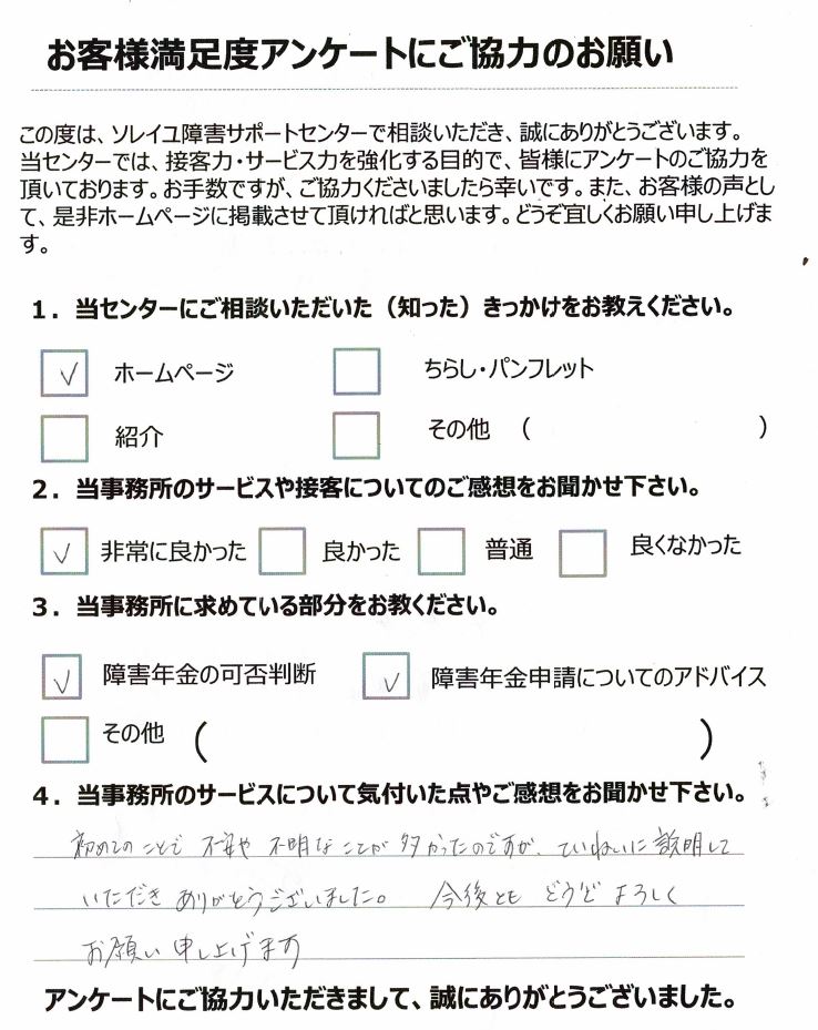 初めてのことで不安や不明なことが多かったのですが、ていねいに説明していただきありがとうございました。今後ともどうぞよろしくお願い申し上げます。